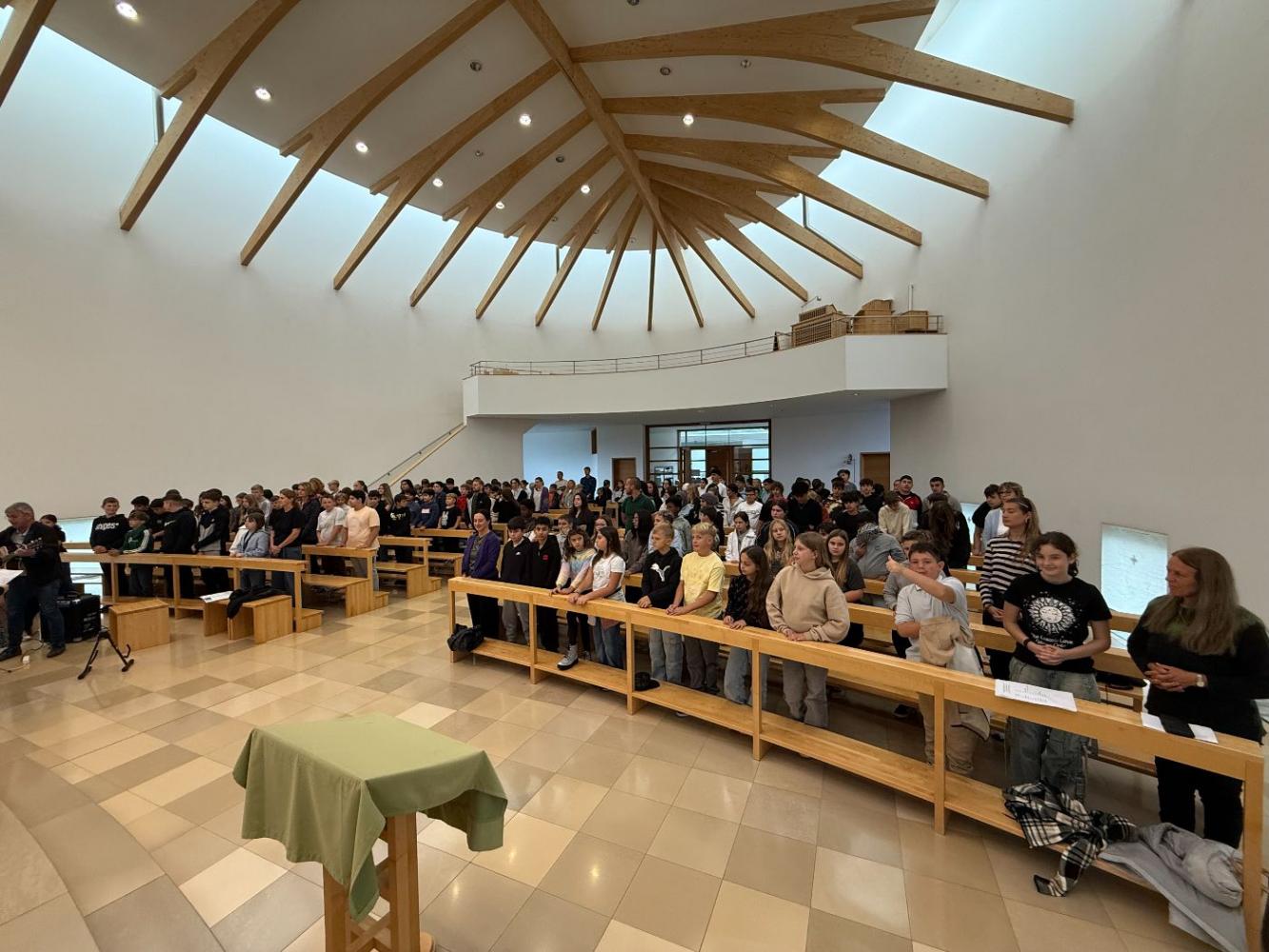 Unsere Schule startete das neue Schuljahr auch wieder mit einem Wortgottesdienst in der Heilig-Geist-Kirche in Telfs. Unser Dekan Dr. Peter Scheiring feierte persönlich diesen gemeinsam mit unserer Schulgemeinschaft. Unser Schulchor und die Lehrerband umrahmten die Feier musikalisch.