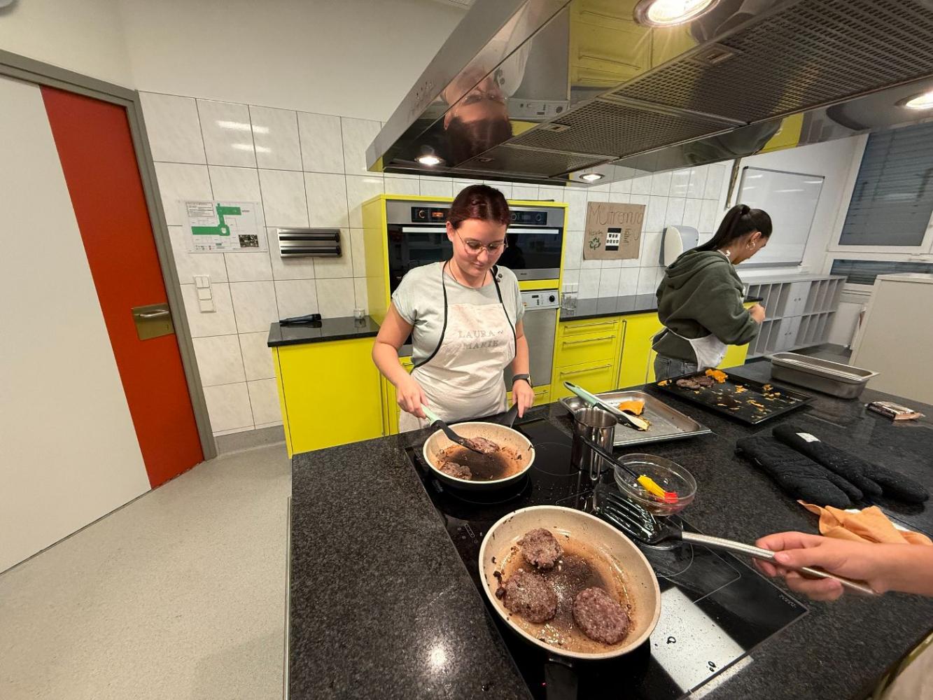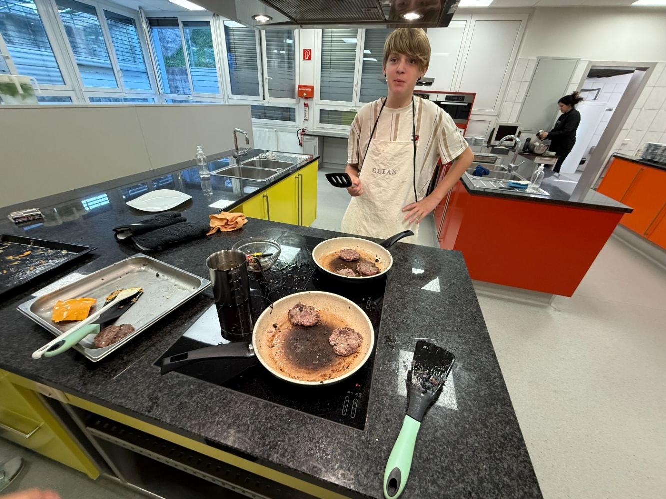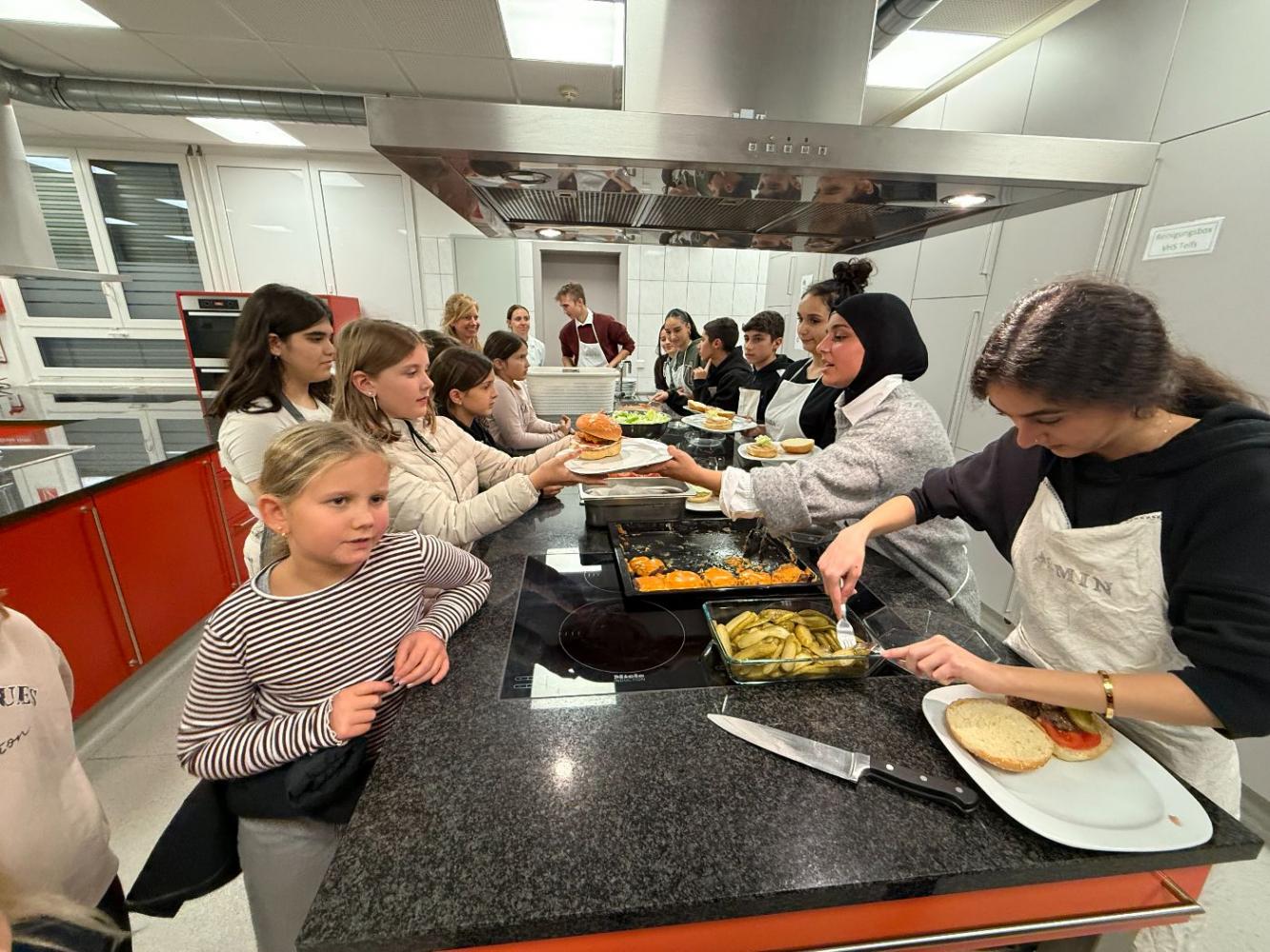 Ein besonderes Highlight war der Unterrichtsbesuch in der Schulküche, bei dem Besucher*innen nicht nur Einblicke in den praktischen Unterricht erhielten, sondern auch mit sehr leckeren Burgers verköstigt wurden.
