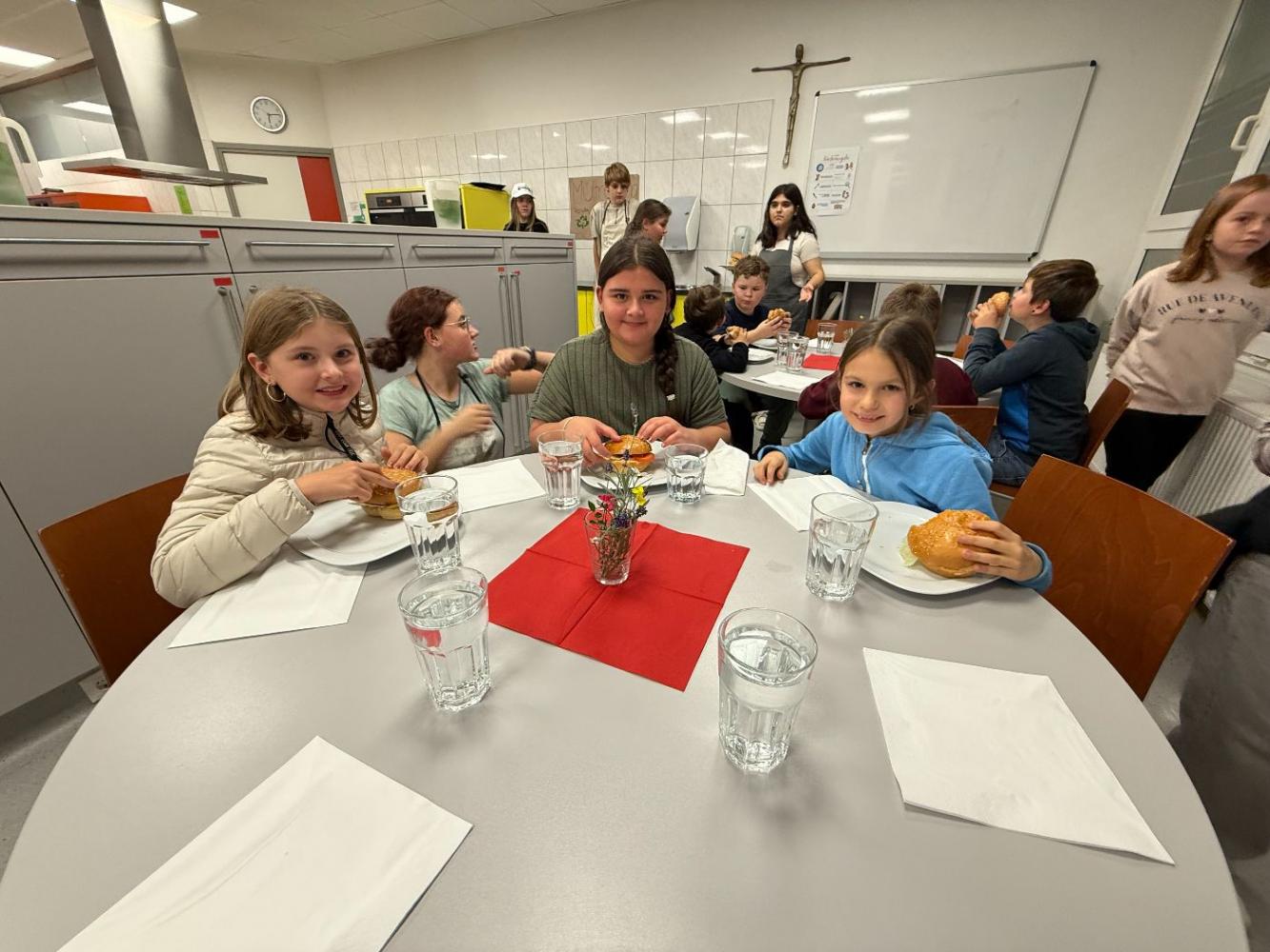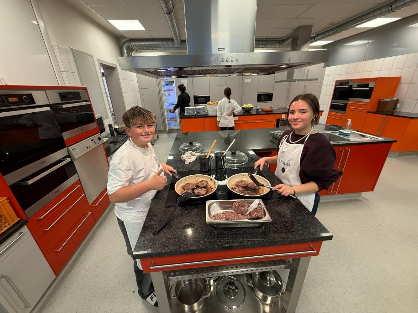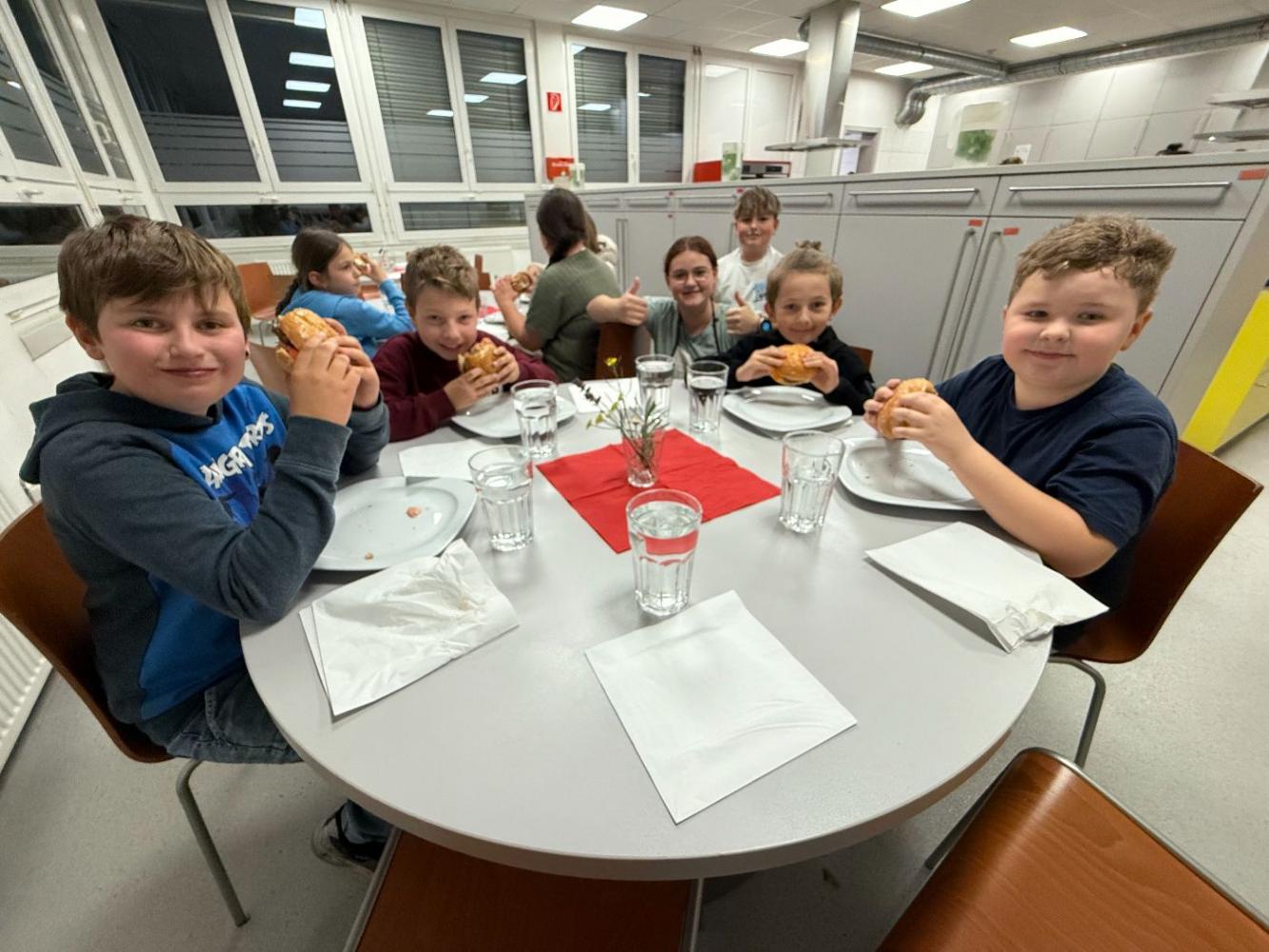 Ein besonderes Highlight war der Unterrichtsbesuch in der Schulküche, bei dem Besucher*innen nicht nur Einblicke in den praktischen Unterricht erhielten, sondern auch mit sehr leckeren Burgers verköstigt wurden.