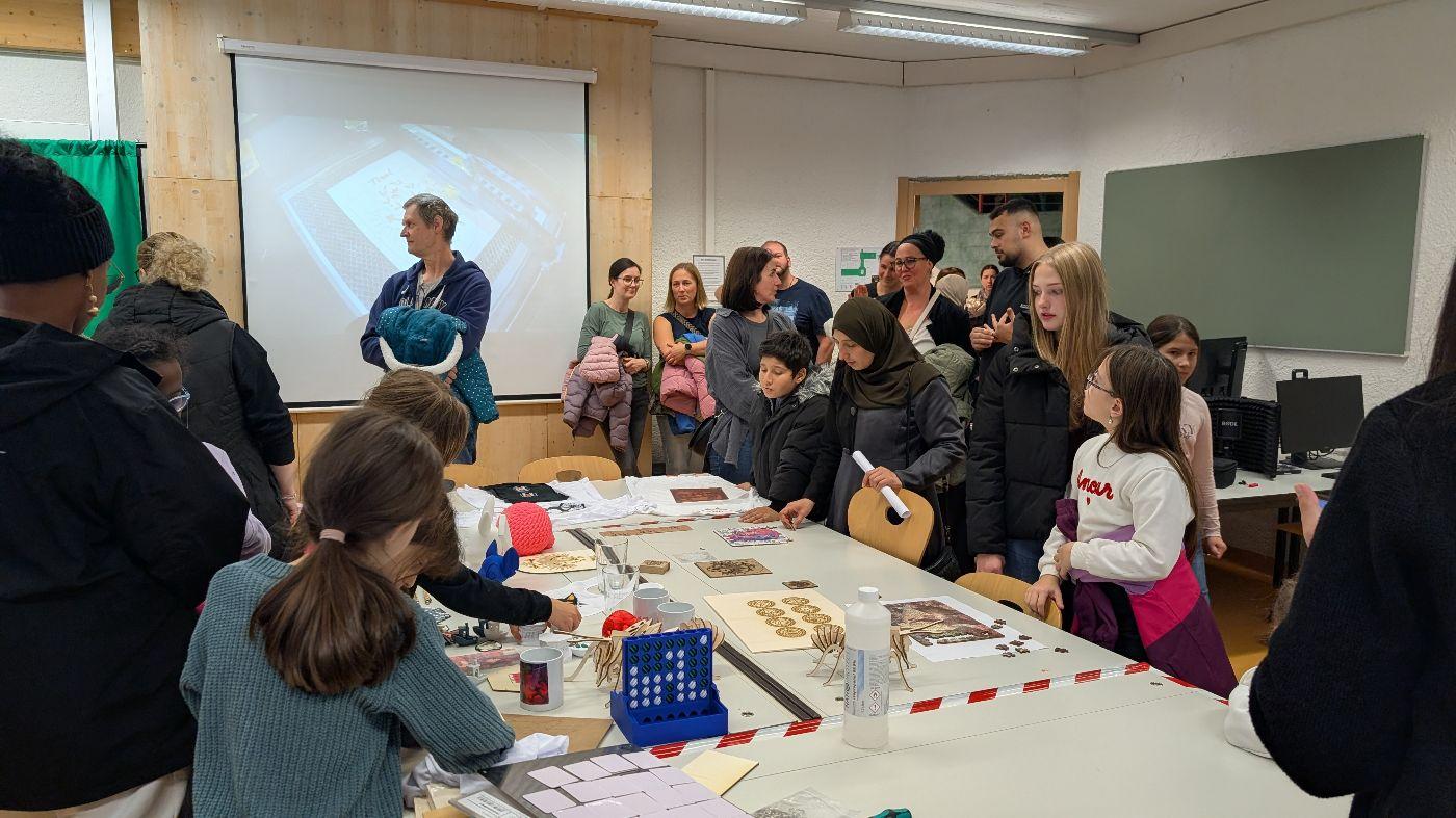 Im Anschluss hatten die Besucherinnen die Möglichkeit, an verschiedenen Aktiv-Workshops teilzunehmen, die regen Zuspruch fanden. Die Bereiche Musik & Tanz, Sport, das kreative Atelier sowie das MINT-Media-Lab mit 3D-Druck, Laser-Cutter, GoPro-Station, Podcast-Studio und Animation sorgten für abwechslungsreiche Einblicke in den Schulalltag. Viele Kinder und Eltern nutzten die Gelegenheit, selbst auszuprobieren und Fragen an Lehrpersonen und Schülerinnen zu richten.