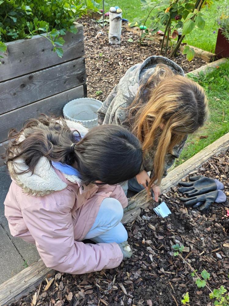 Damit im Frühling wieder viele Blumen wachsen, haben wir jede Menge Blumenzwiebeln in die Erde gesteckt.